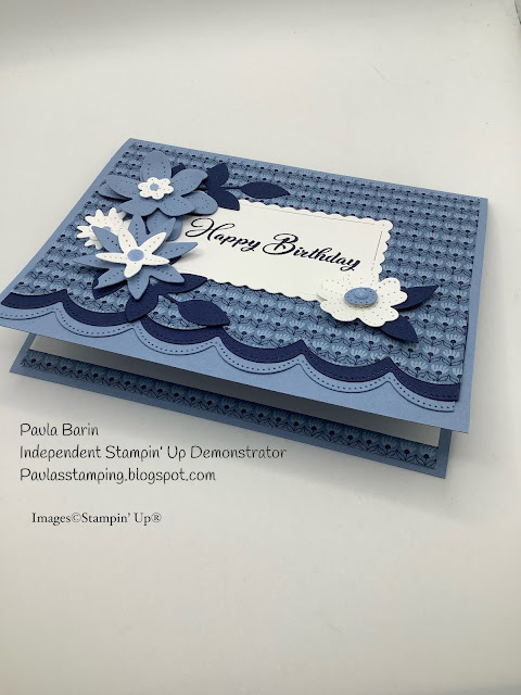 For the DSP, I used Awash in Beauty, cut a piece measuring 2 7/8" x 5 3/8" and another piece at 7/8" x 5 3/8". adhere them to the front as shown above.